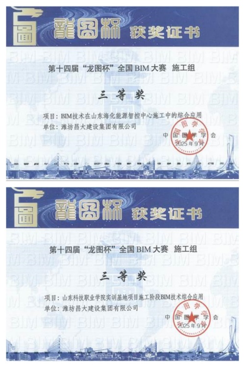 二則是,由中國(guó)圖學(xué)學(xué)會(huì)舉辦的第十四屆“龍圖杯”全國(guó)BIM大賽公布了獲獎(jiǎng)結(jié)果。集團(tuán)公司申報(bào)的《BIM技術(shù)在山東?;茉粗强刂行氖┕ぶ械木C合應(yīng)用》、《山東科技職業(yè)學(xué)院實(shí)訓(xùn)基地項(xiàng)目施工階段BIM技術(shù)綜合應(yīng)用》均獲三等獎(jiǎng)。實(shí)現(xiàn)歷史新突破。